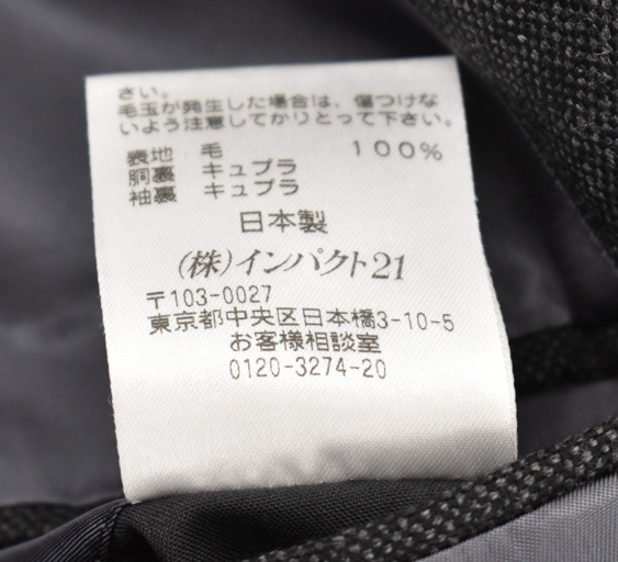表 毛100% 裏キュプラ 100%