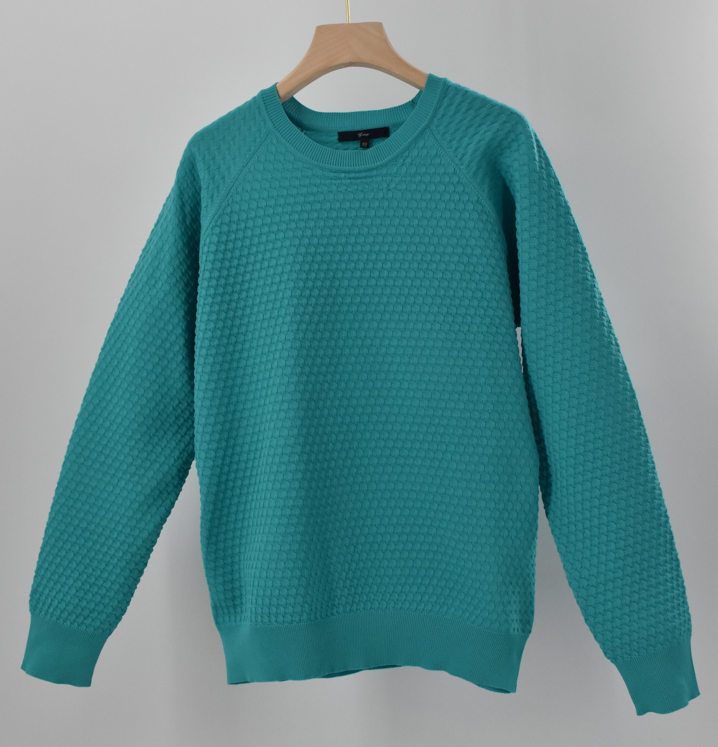 このきれいな色のニットをぜひ着こなしてほしいです。
