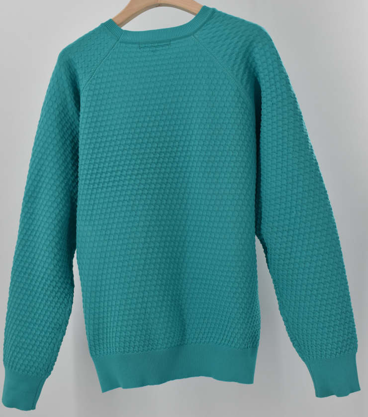 鮮やかな色合いが品よく映えるワッフル編みニット。ほどよい凹凸がやさしい立体感を生み、軽やかなポリエステル素材でサラリと上品に着られる一枚です。