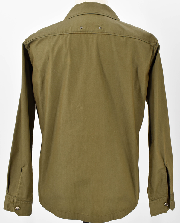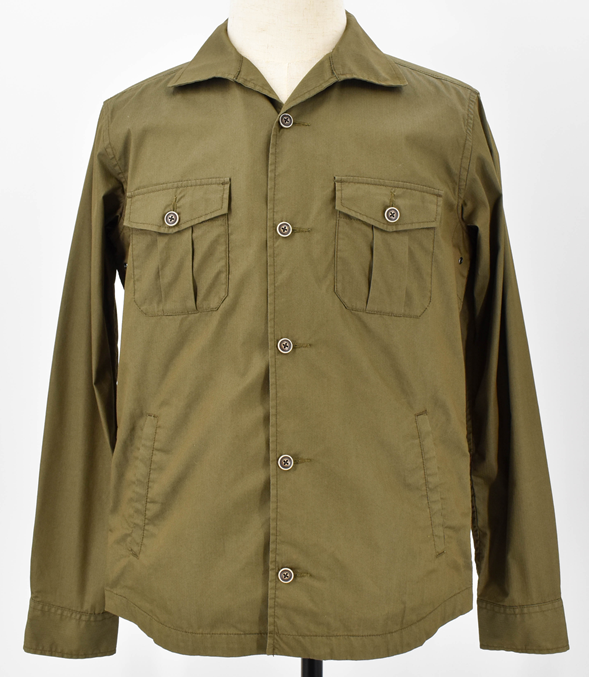 落ち着いたカーキカラーが魅力のTAKEO KIKUCHIのシャツジャケット。コットン混素材で軽やかかつハリのある質感。胸ポケットがアクセントになり、上品なワークテイストを演出。羽織るだけで大人の抜け感をプラスできる一着。