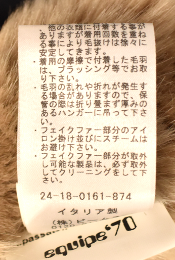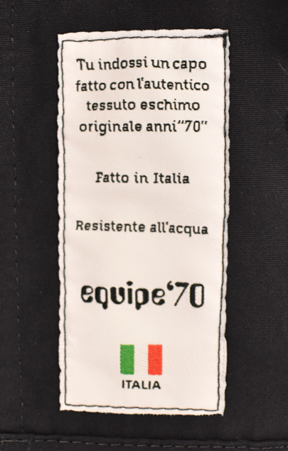 イタリア製ブランド equipe’70 のフーデッドアウター。1970年代のエスキモーウェアをルーツにしたデザインで、内側にはフェイクファーを配し、あたたかみのある仕上がりです。冷える季節の外出に頼れるアウターです。