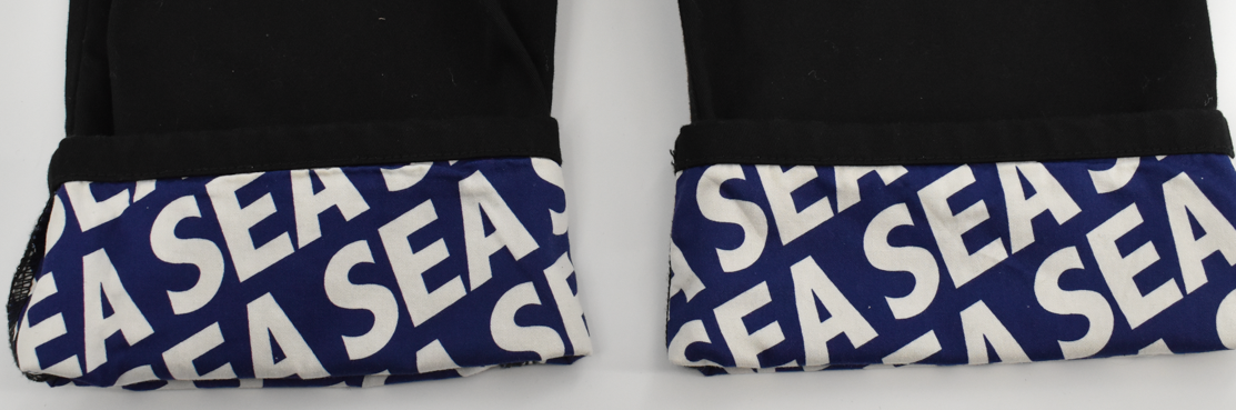 ベーシックな見た目ながら、ポケット裏や裾裏にコラボならではのプリントがあしらわれている点がポイントです。