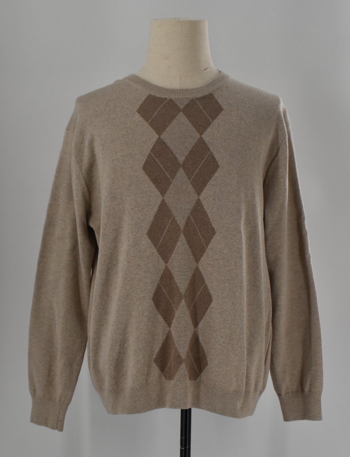 ベージュを基調にした落ち着いた色合いに、フロントのアーガイル柄がほどよいアクセントになったPERRY ELLIS PORTFOLIOのセーターです。コットン100%のやさしい肌触りで、軽やかに着られる一枚。シャツを重ねたきれいめな着こなしにも取り入れやすく、秋冬のコーデに上品な表情を添えてくれます。