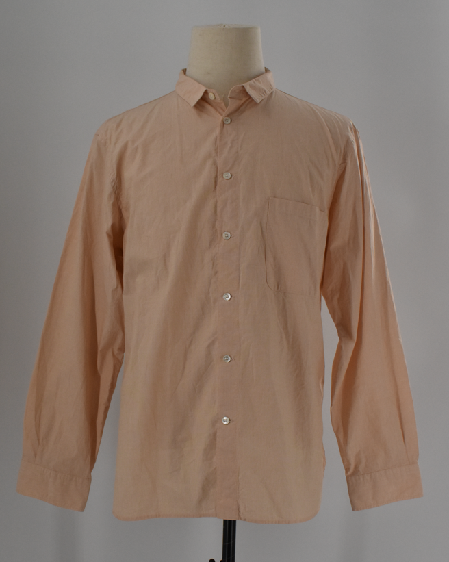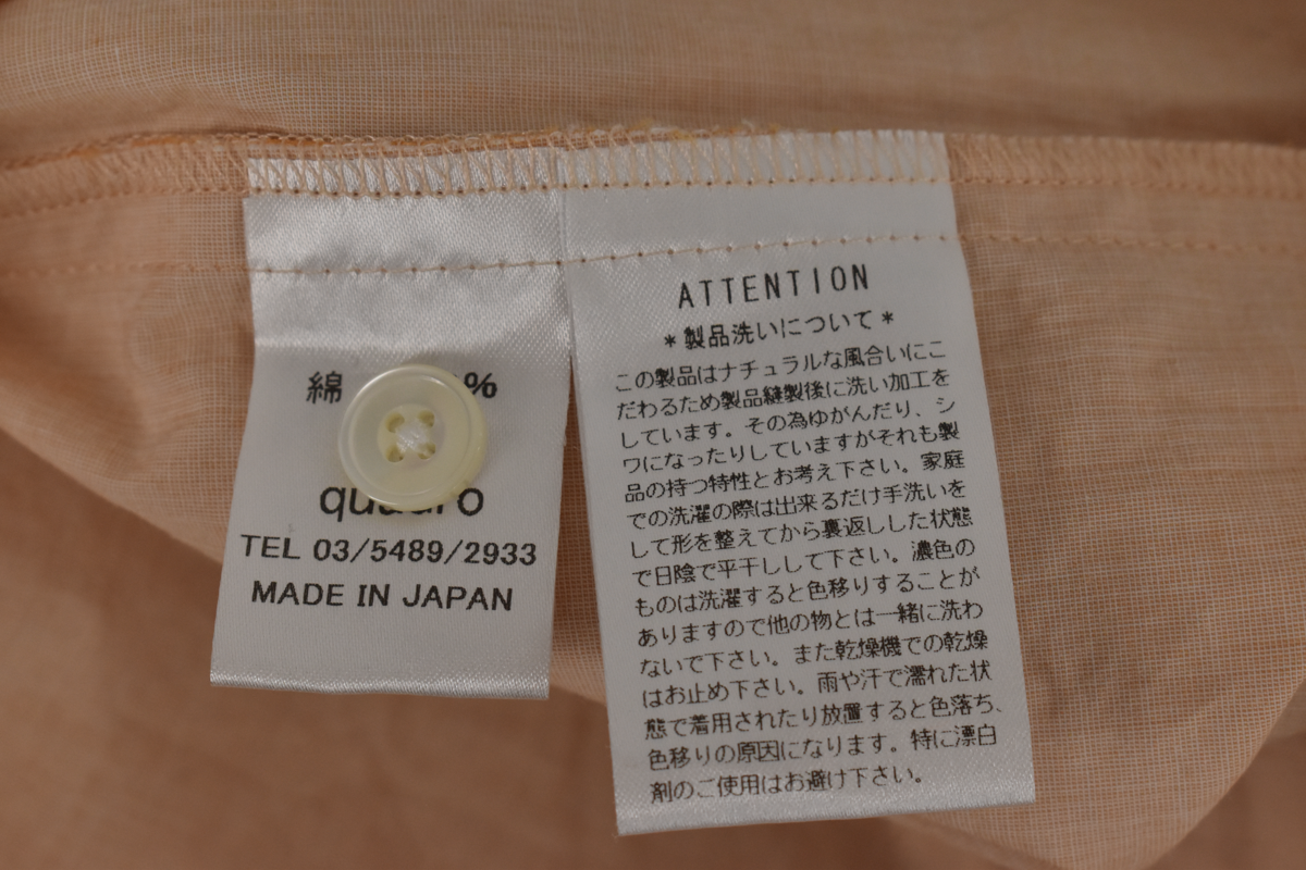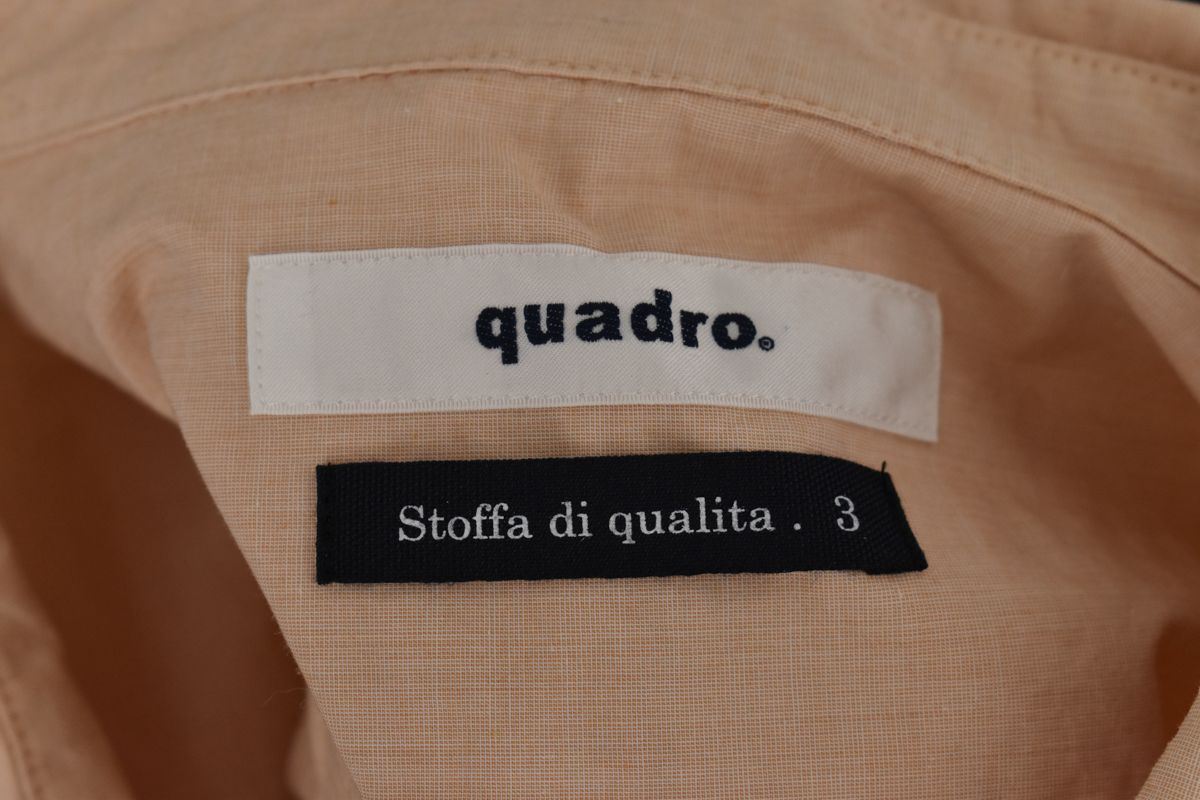 やわらかなピーチカラー(淡いオレンジ系)が印象的な、quadroのシャツです。