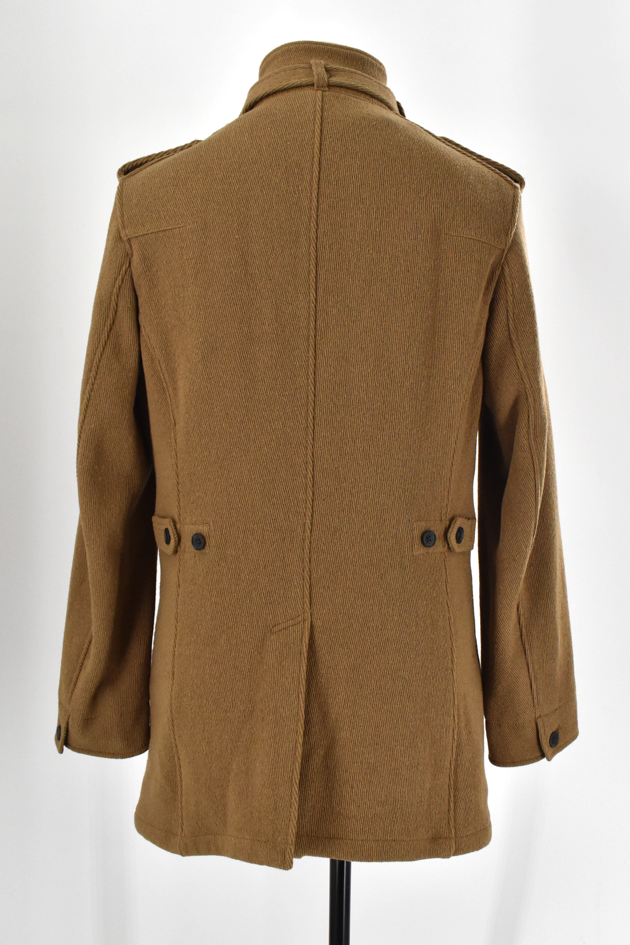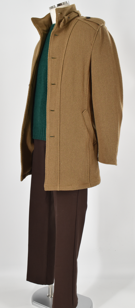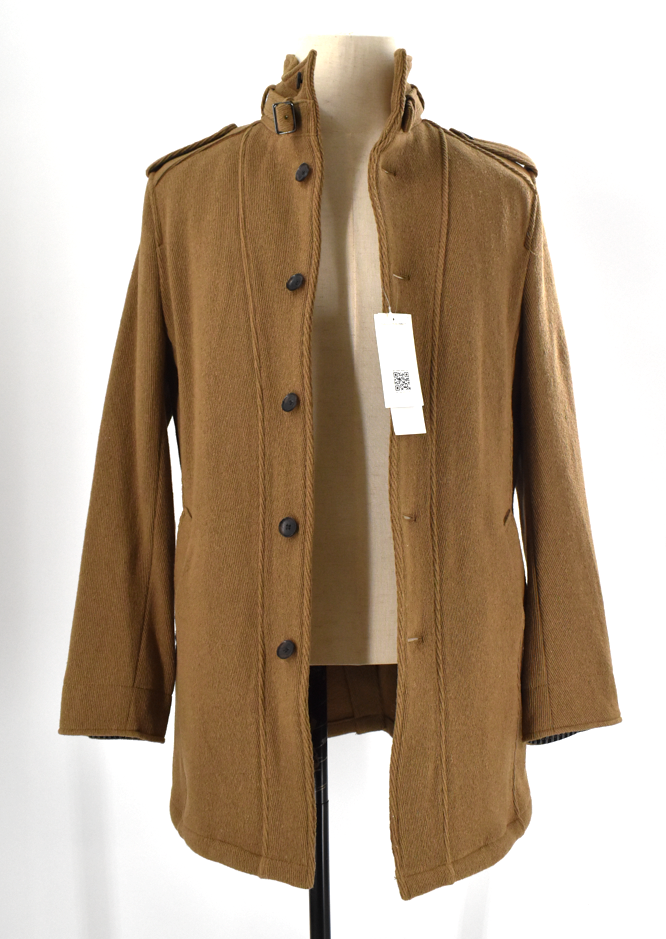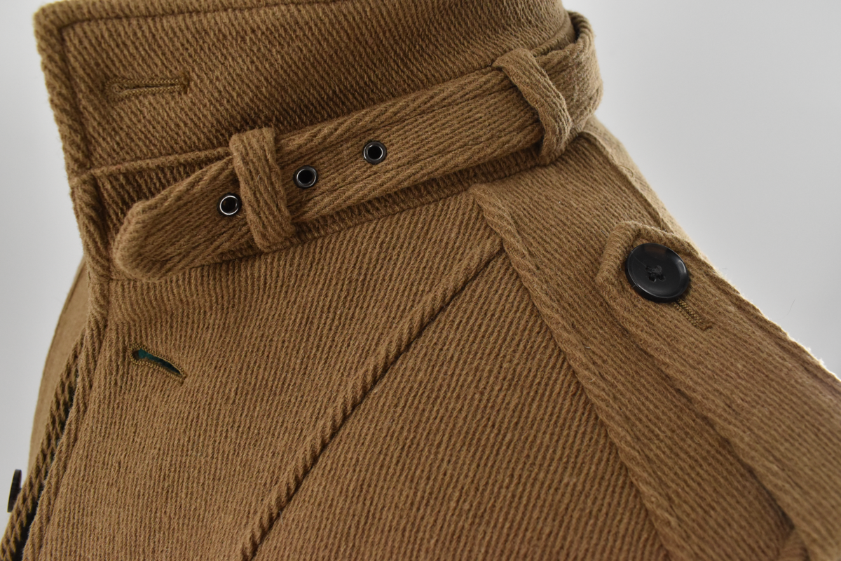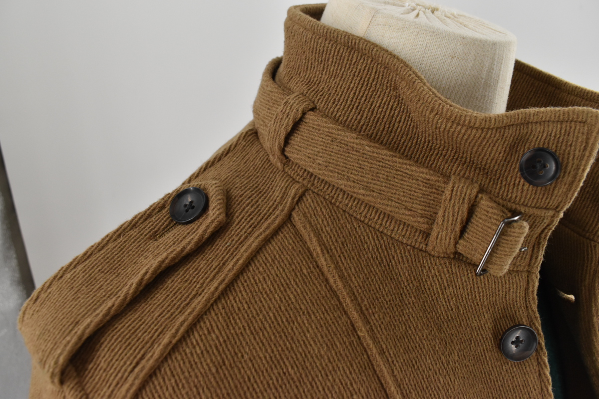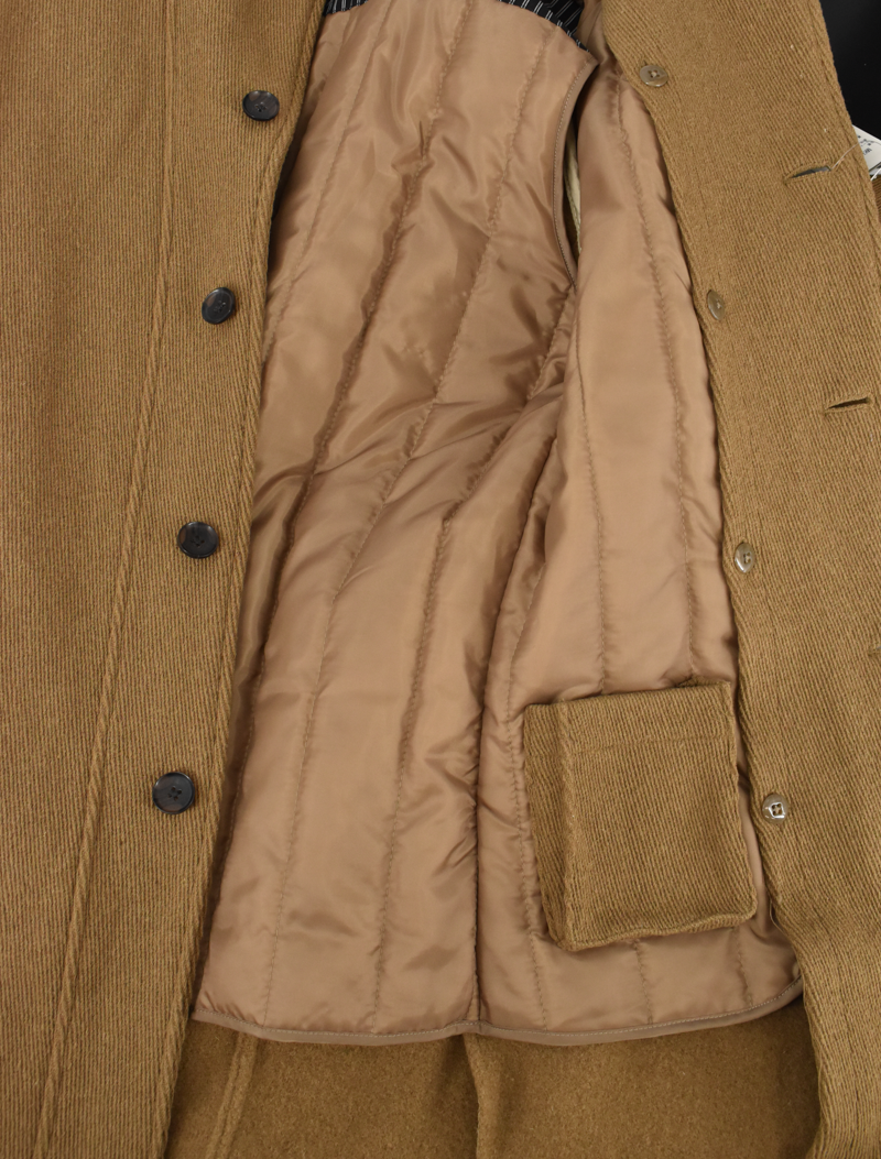 ウールをベースにナイロンを混紡した上品な印象のコートです。 スタンドカラーに襟元のベルト、肩まわりにさりげなく入ったデザインなど、細部にまで表情があるのが特徴。 中綿入りの裏地で、秋冬の外出にも安心して着用できます。
