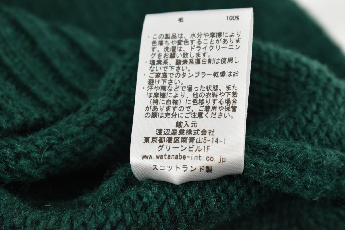 ウール100%のやわらかな編み地と、スコットランド製ならではの風合いも魅力です。