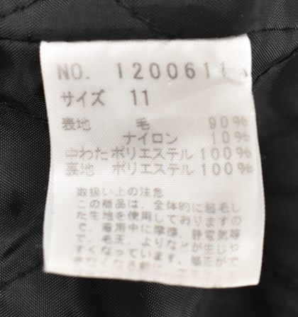 表地 毛 90% ナイロン 10% 中綿 ポリエステル 100% 裏地 ポリエステル 100%