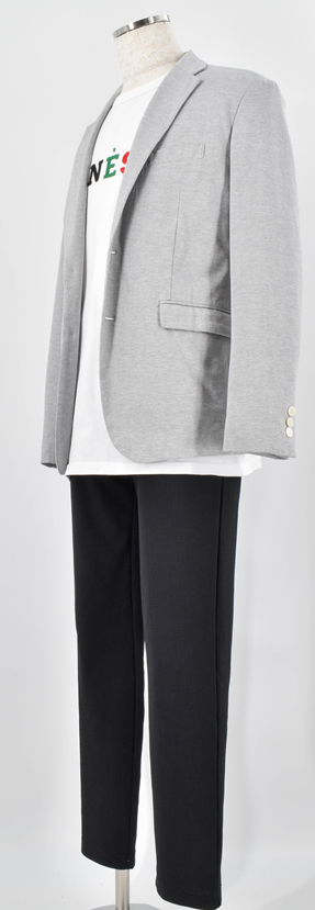 やや薄手で、綿とポリエステルでさらっとした着心地です。細身でスタイリッシュなシルエット。着るだけでいつもと違う雰囲気が楽しめます。