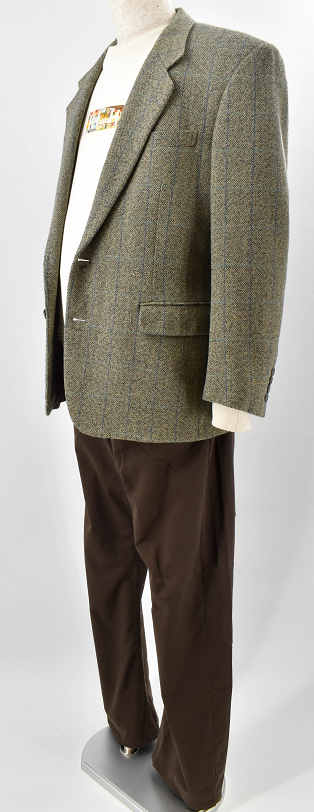 ベーシックなテーラードジャケットと、カジュアルなトレーナー・パンツのセット